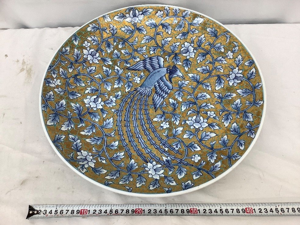 Product name: 藤井朱明窯 金彩鳳凰図大皿/花唐草/染付/有田焼 皿立て付属(滑り止め1つ無し) ACB 中古品