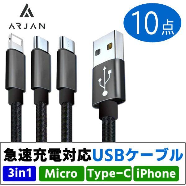(1122)▼Arjan 3way 充電ケーブル ブラック 10点