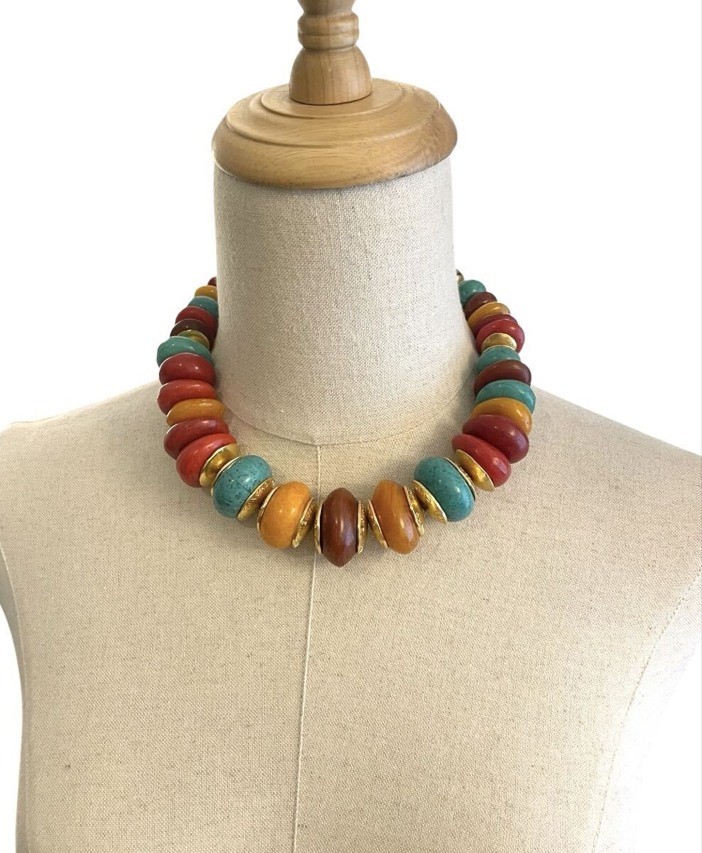 1円 超レア シャネル 98P ネックレス カラーストーン ターコイズ マルチカラー ネックレス チョーカー ヴィンテージ ゴールド ココマーク