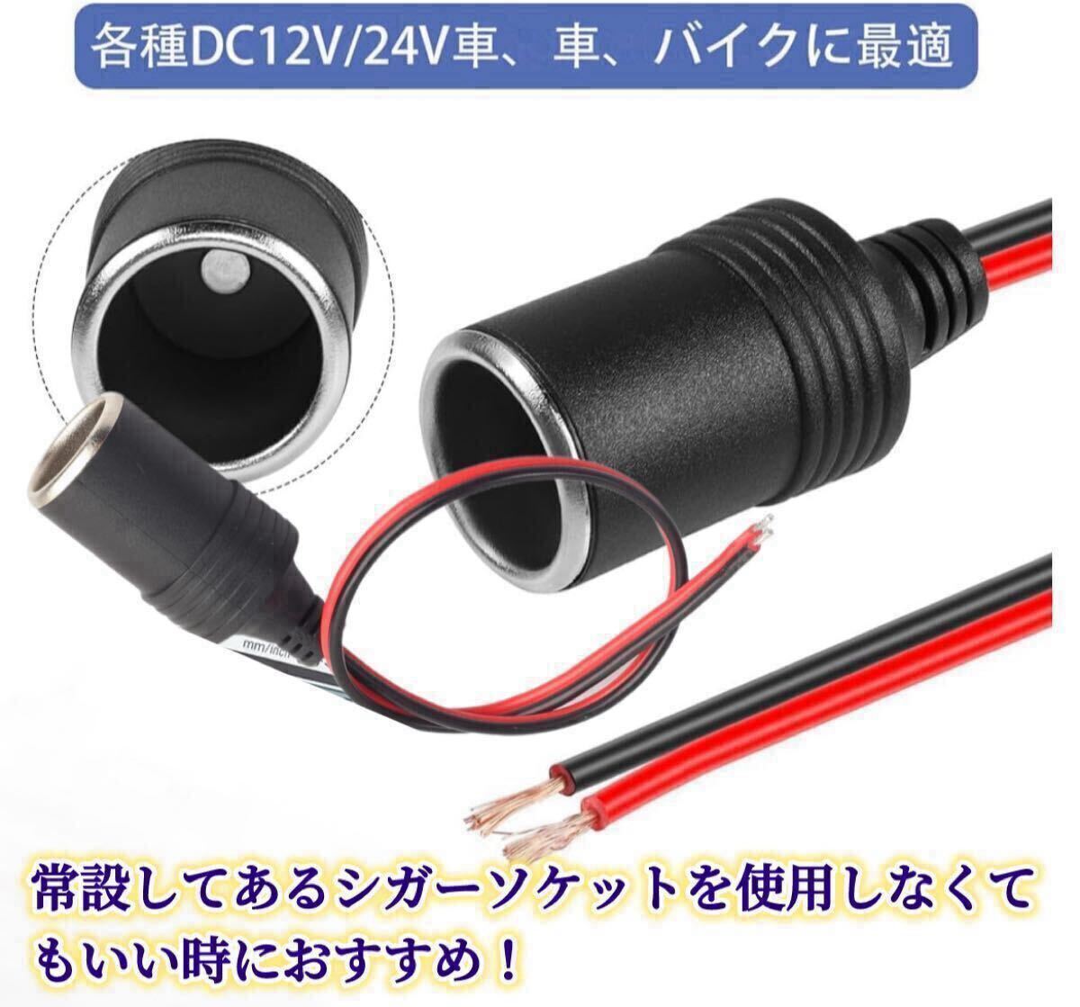 Product name: シガーソケット メス 車載 増設 DC12V 24V 電源ケーブル付 汎用 シガーライター ドラレコ ETC配線30cmドライブレコーダー コネクター