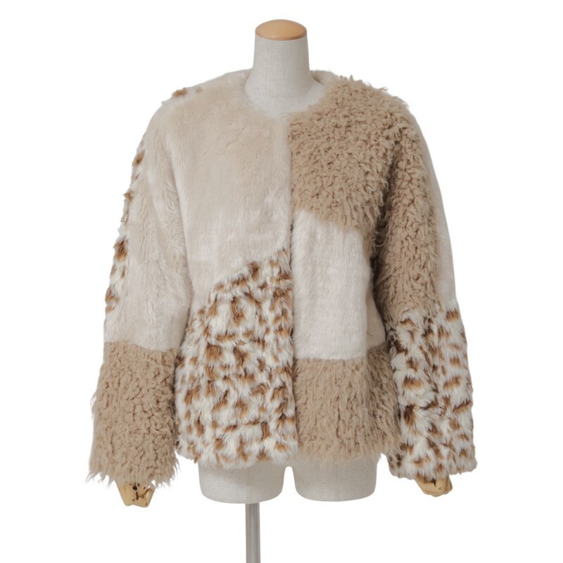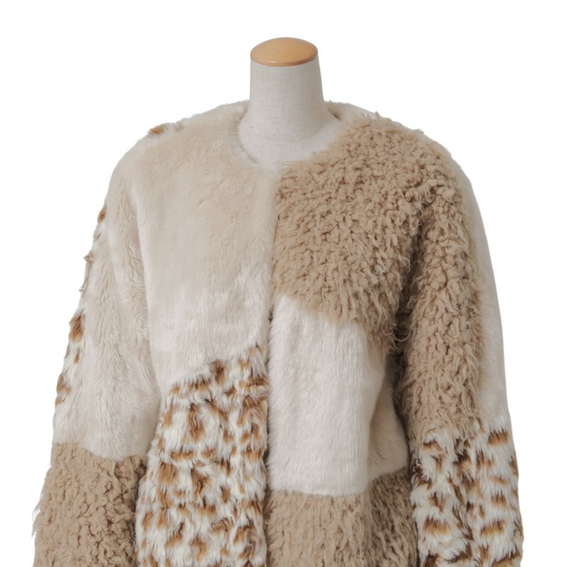 Product name: GR3418△ROSE BUD ローズバッド フェイクファーパッチワークブルゾン/6008221018 ノーカラーコート ジャケット ベージュ系 F/S-M相当