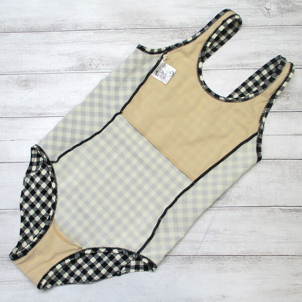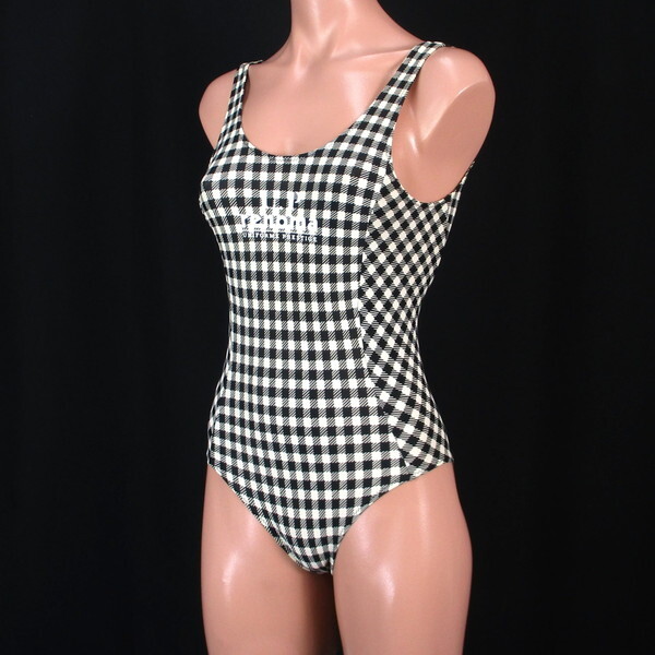Product name: E8082★レノマ 水着 ワンピース 小さいサイズ 140サイズ 女子 記名あり チェック柄 モノトーン 黒白 水泳 プール ビーチ 海