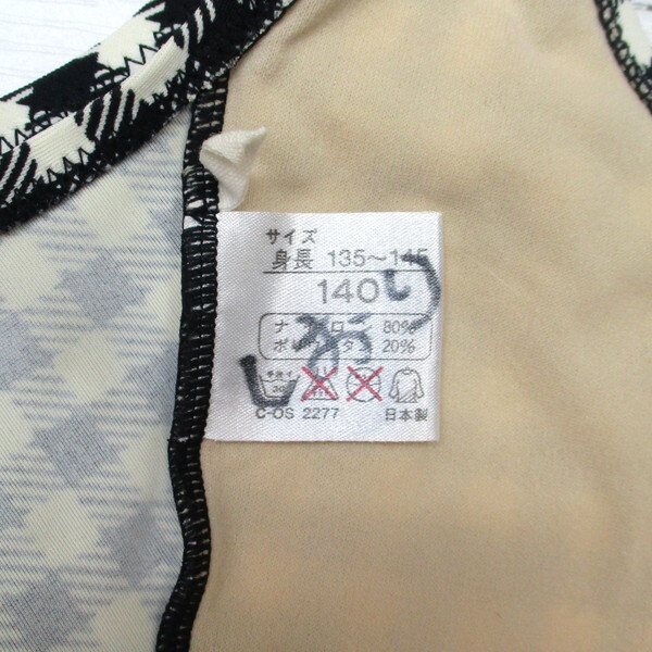 E8082★レノマ 水着 ワンピース 小さいサイズ 140サイズ 女子 記名あり チェック柄 モノトーン 黒白 水泳 プール ビーチ 海