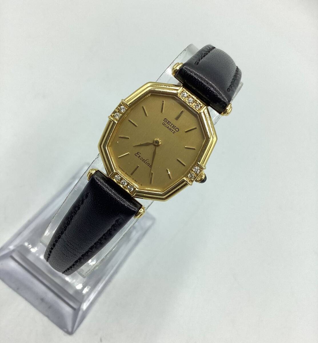 【15790】希少!SEIKO セイコー Exceline エクセリーヌ 8420-5850 14K ダイヤ クォーツ スクエア レディース 本革ベルト付き 腕時計 ★中古品★稼働品★