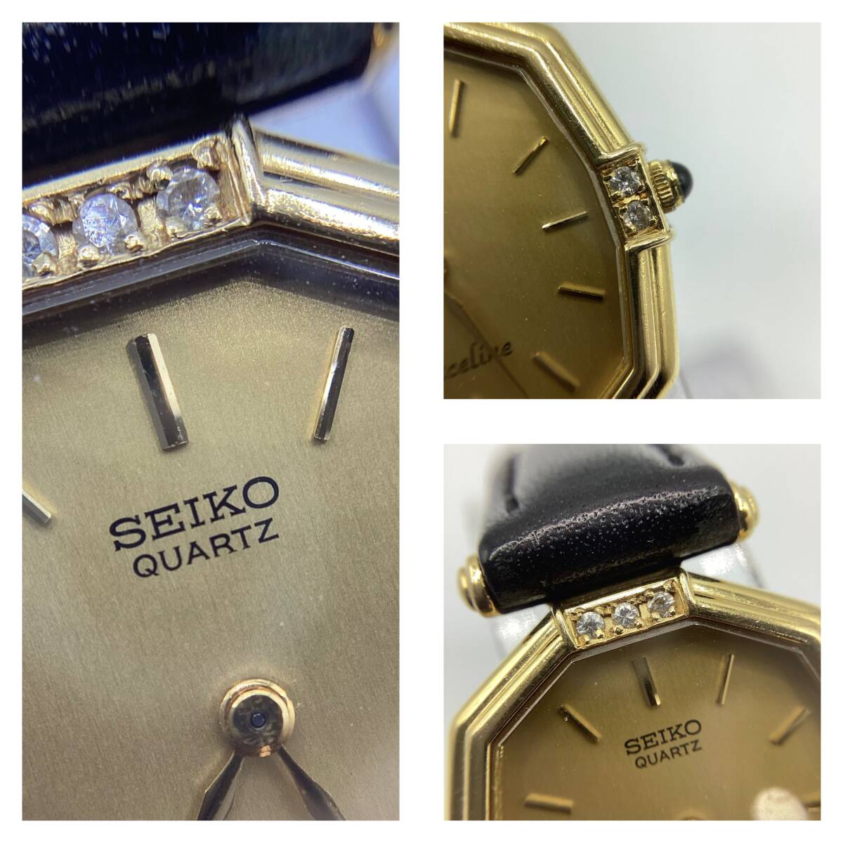 ■商品名 【15790】希少!SEIKO セイコー Exceline エクセリーヌ 8420-5850 14K ダイヤ クォーツ スクエア レディース 本革ベルト付き 腕時計 ★中古品★稼働品★