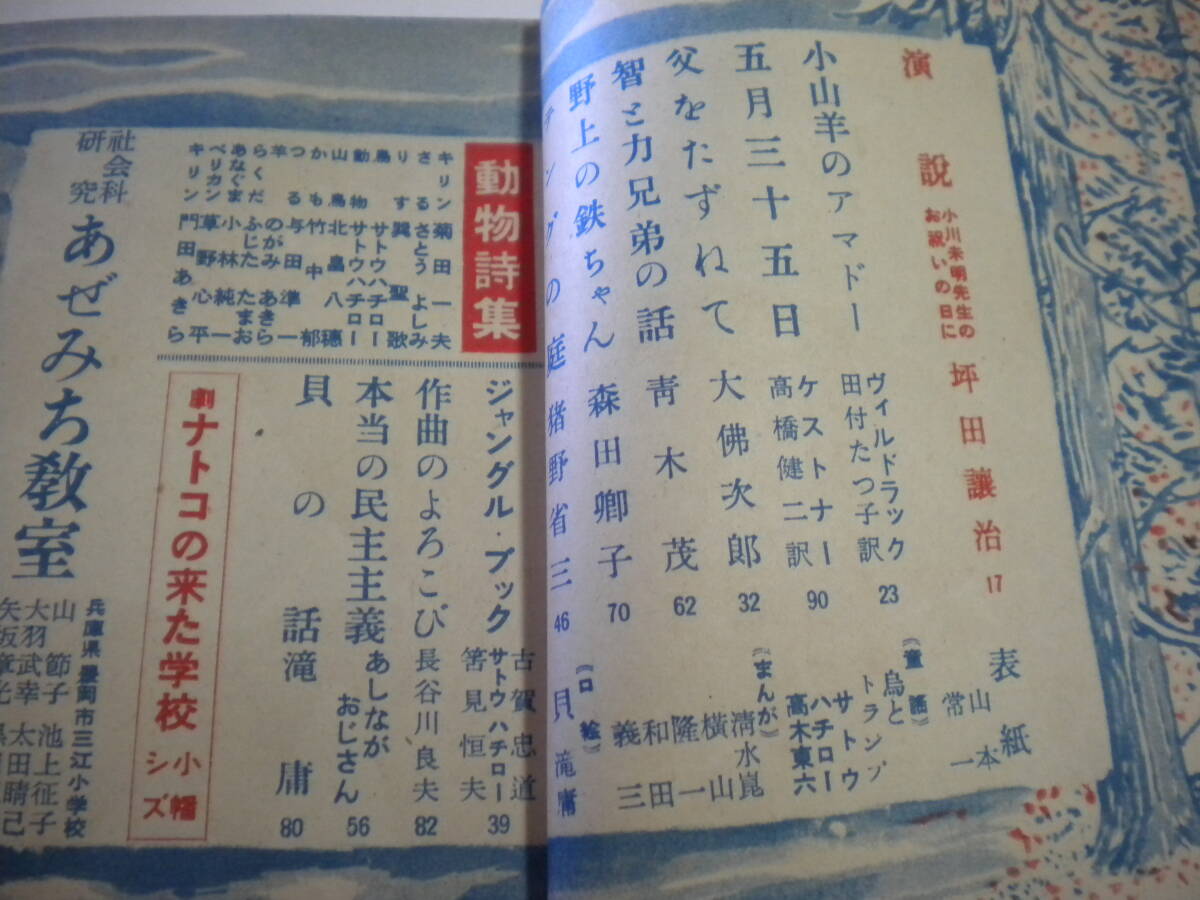 「少年少女」昭和26年7月号 動物詩集菊田一夫サトウハチロー竹中郁北畠八穂野上彰草野心平他 猪野省三 森田卿子 清水崑  横山隆一