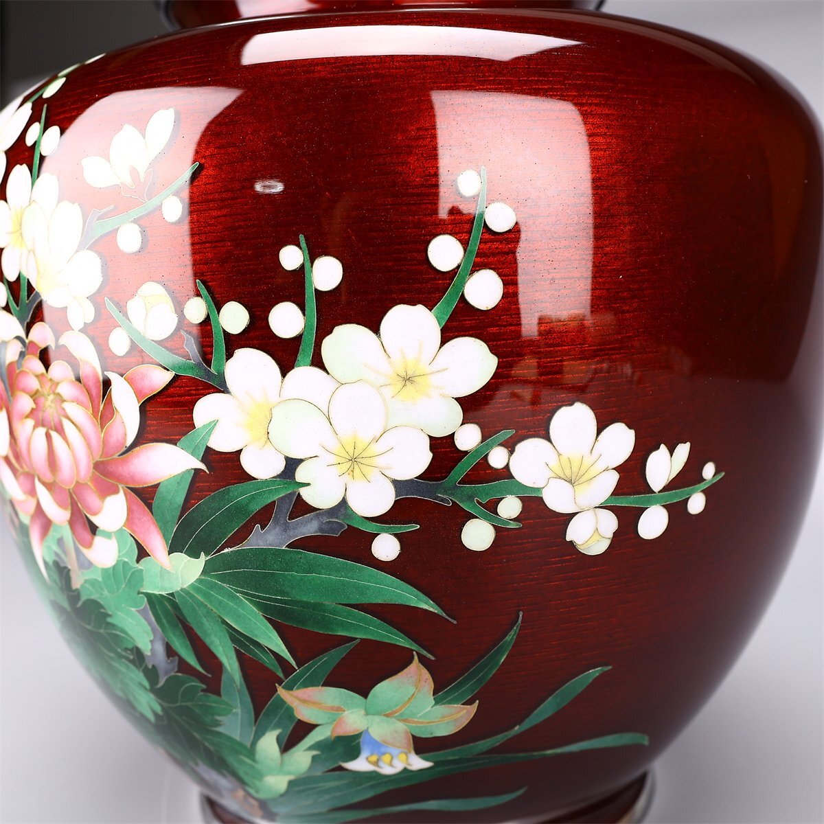 Product name: 【吉】SA542 時代 透赤釉 【銅胎七宝】 花瓶 高23㎝ 径22㎝/時代の擦れあり!