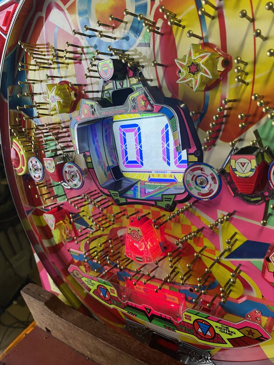 商品説明ご覧頂きありがとうございます。マルホンの保留玉連チャン機スーパービジョンの出品です。当時のマルホンの透き通るようなデカデジタルがカッコよくてかなり打った記憶があります。なかなか出てこないレア台をこの機会に是非ゲットしてください(^^)