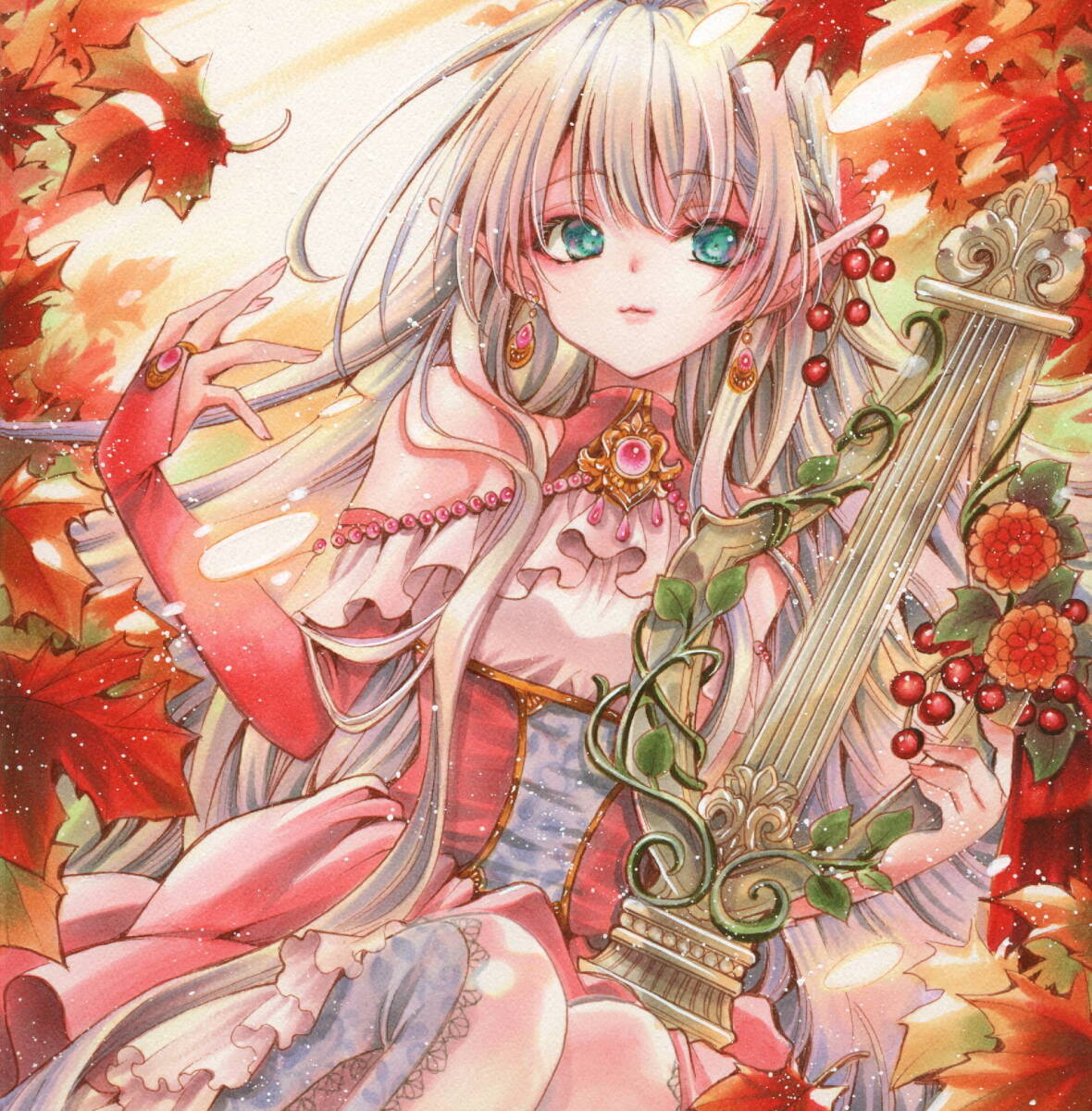 同人手描きイラスト・オリジナル『黄金の森』A4サイズ・ケントボード