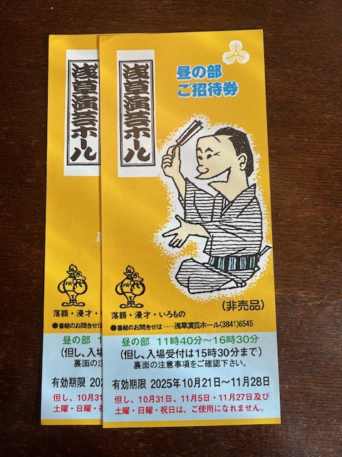 Product name: ☆浅草演芸ホール 10月21日~11月28日 昼の部 2枚セット☆