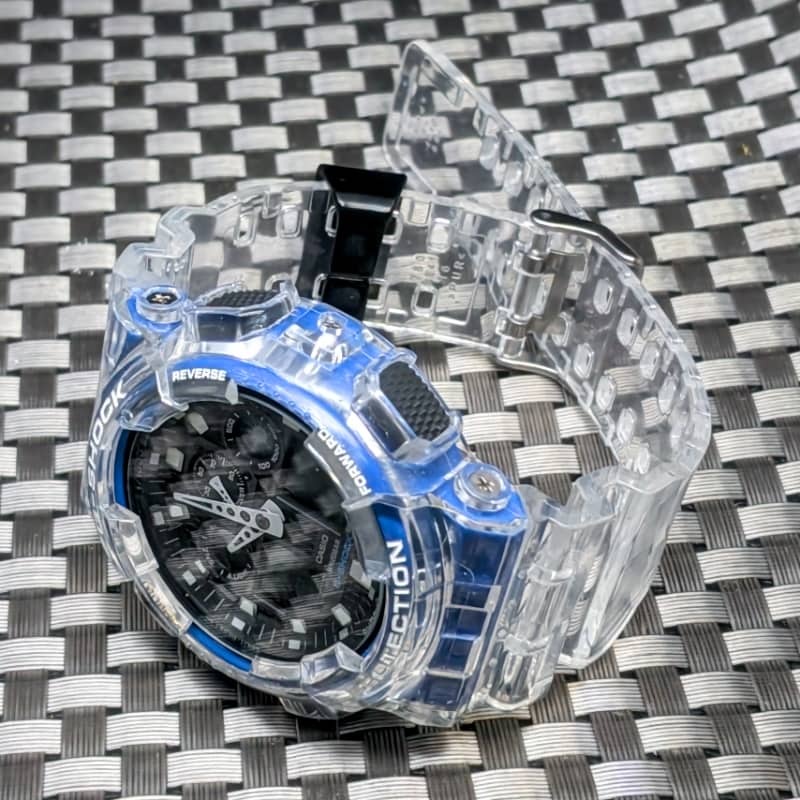 CASIO Gショック『GA-100B-7AJF』を爽やかなクリアスケルトンの互換ベゼル + ベルト でカスタム