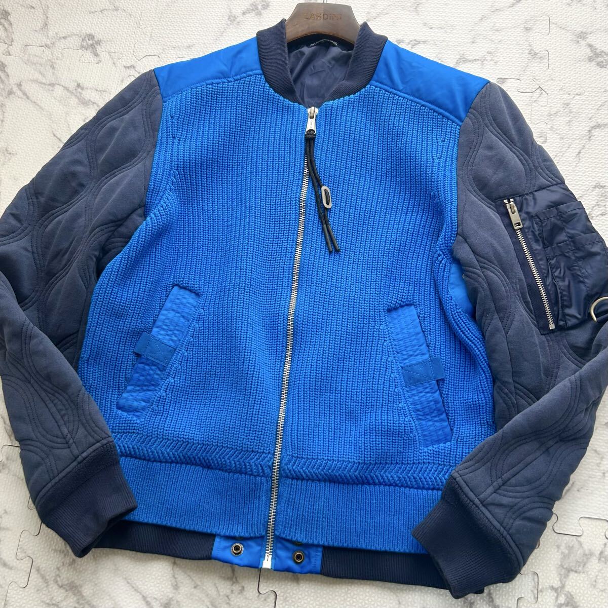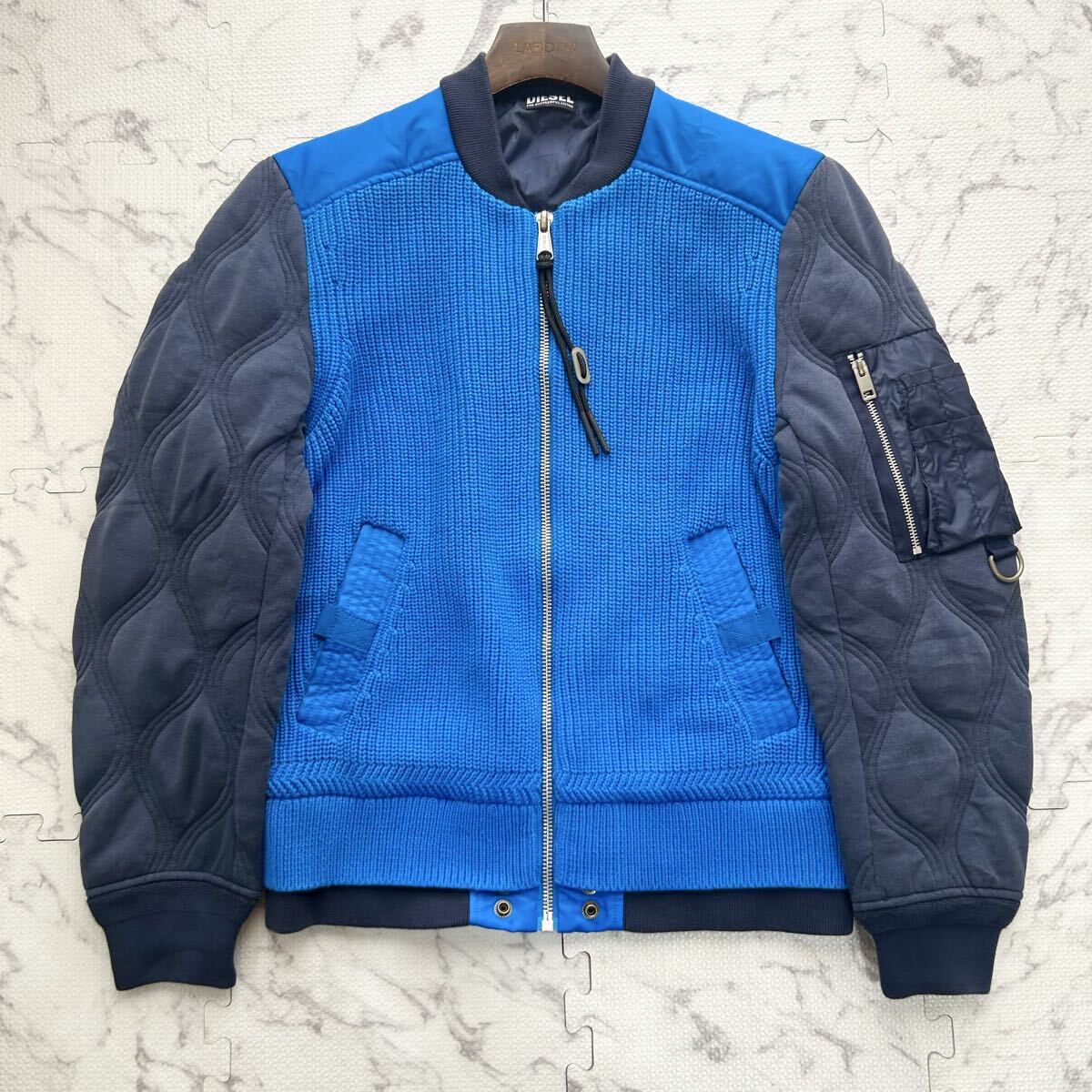 Product name: 極美品/L相当●DIESEL ディーゼル ボンバージャケット ハイブリッド ジャケット MA-1 ニット切替 ブルゾン 袖キルティング ブルー メンズ