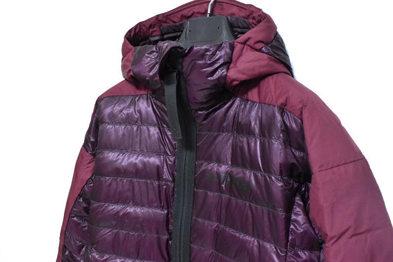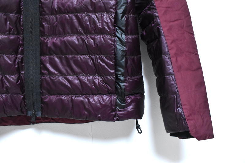 【素材】・・・ナイロン100%、切り替え中綿:ポリエステル100%、ナイロン100%、外側生地:ポリエステル100%、中綿:ダウン80%、フェザー20%。