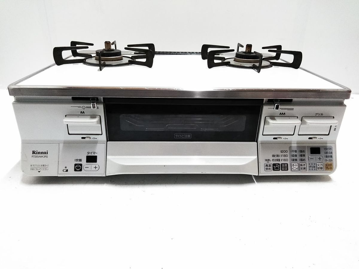 △リンナイ ガステーブル ガラストップ RTS65AWK3RG-WR 都市ガス 2020年 水無両面焼き 右強火力 1104-332※△