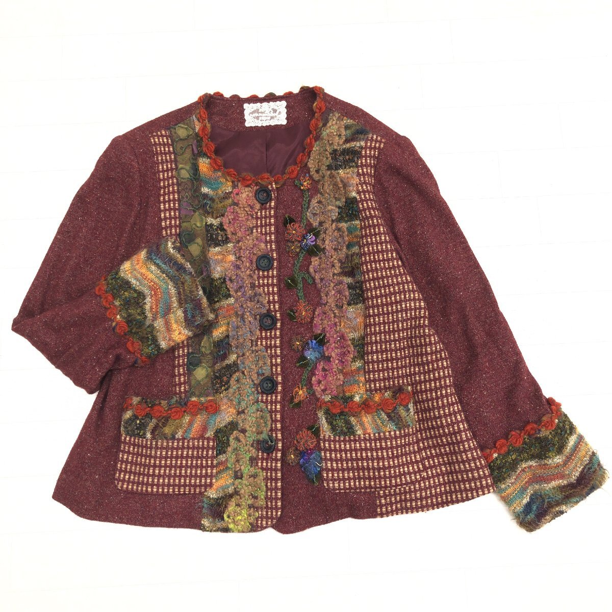 Product name: ●美品 non non dorl ノンノンドール ムッシュ榊 シルク混 ノーカラージャケット XL相当 赤系 ニットジャケット ゆったり 大きい 2L LL