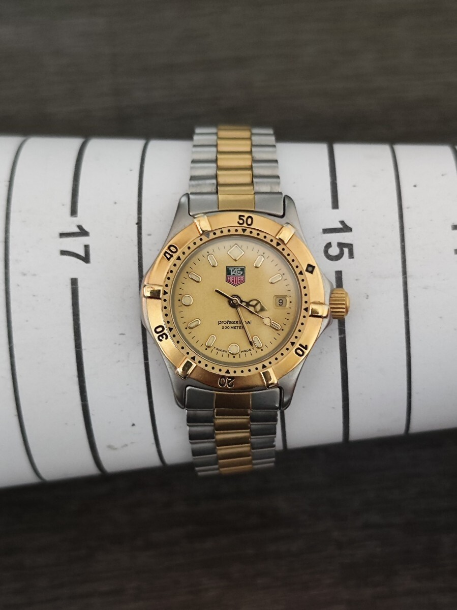 稼働品 タグ・ホイヤー レディース腕時計 ゴールド文字盤 三針デイト オリジナルバンド