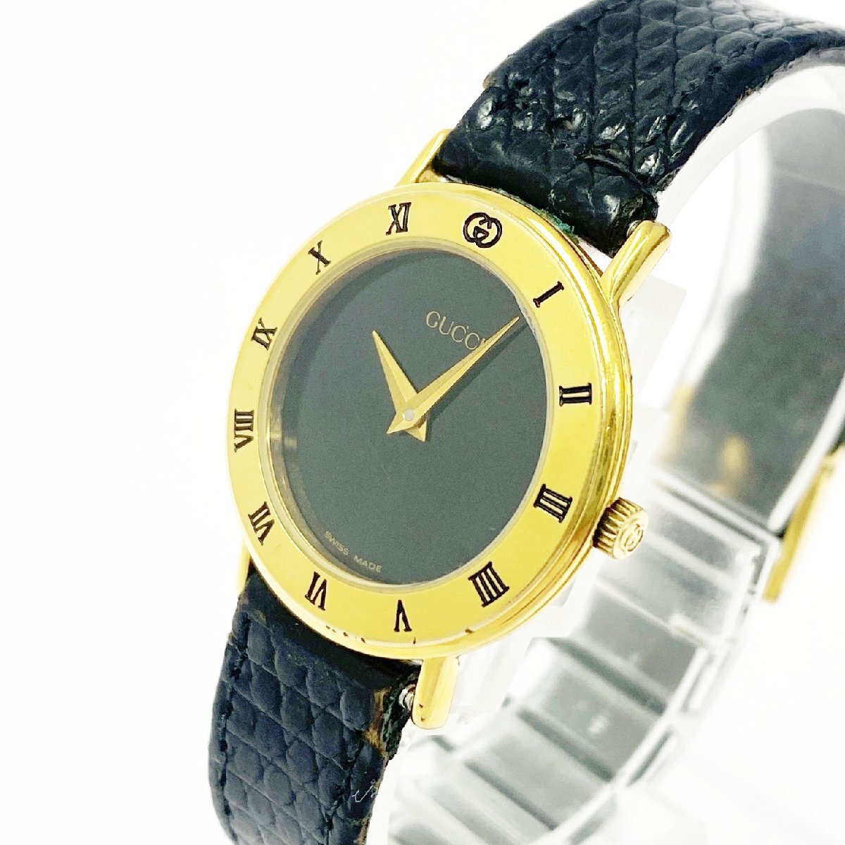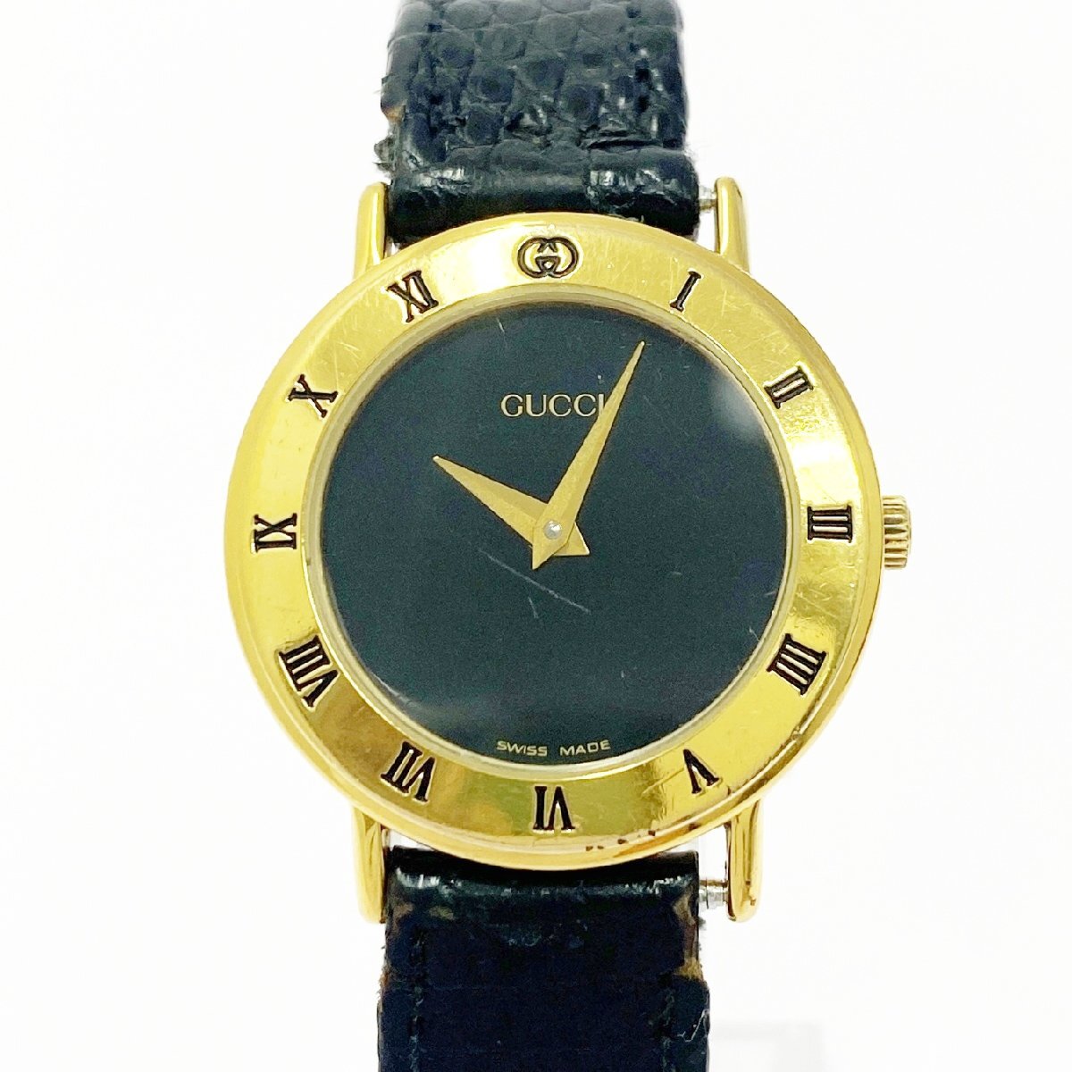 【1円スタート】GUCCI グッチ 3000.2.L GP ブラック文字盤 クオーツ レディース腕時計 511737