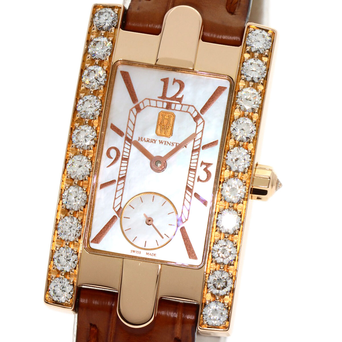 HARRY WINSTON ハリーウィンストン 310LQR AVEQHM21RR029 アヴェニュー 腕時計 K18ピンクゴールド 革 レディース 中古