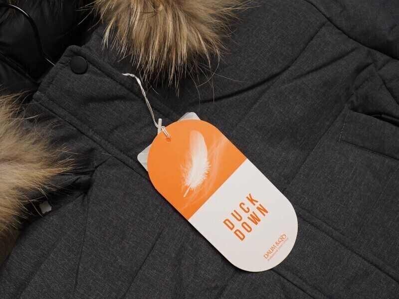 素材・・・表地:ナイロン100 裏地:ナイロン100 充填物1:ダックダウン80 ダックフェザー20 充填物2:ポリエステル100 ファー:ラクーン