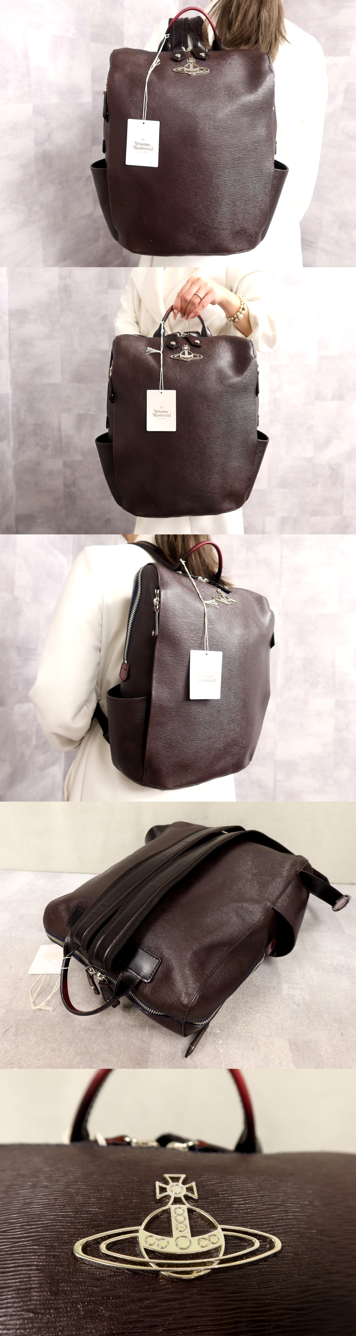 Store ●超美品●ヴィヴィアン・ウエストウッド●オーブ●グラデーション●カーフ レザー 本革●リュックサック●ブラウン●SV金具●B5●Js65323
