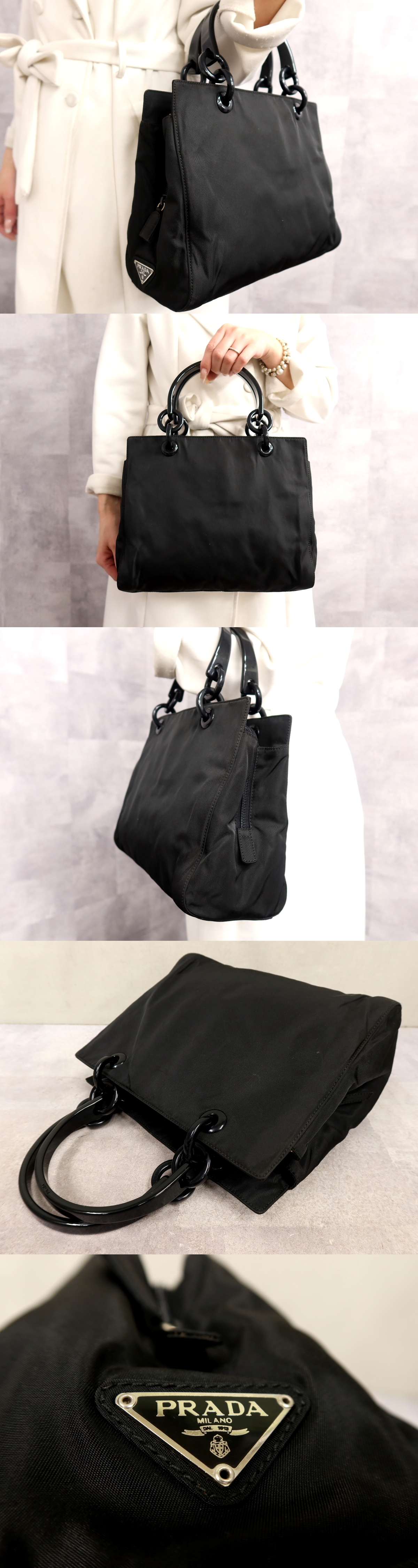 Product name: ●超美品●PRADA プラダ●三角ロゴプレート●ポコノ ナイロン●ハンド バッグ●黒●シルバー金具●腕掛け●イタリア製●かばん●Js65669