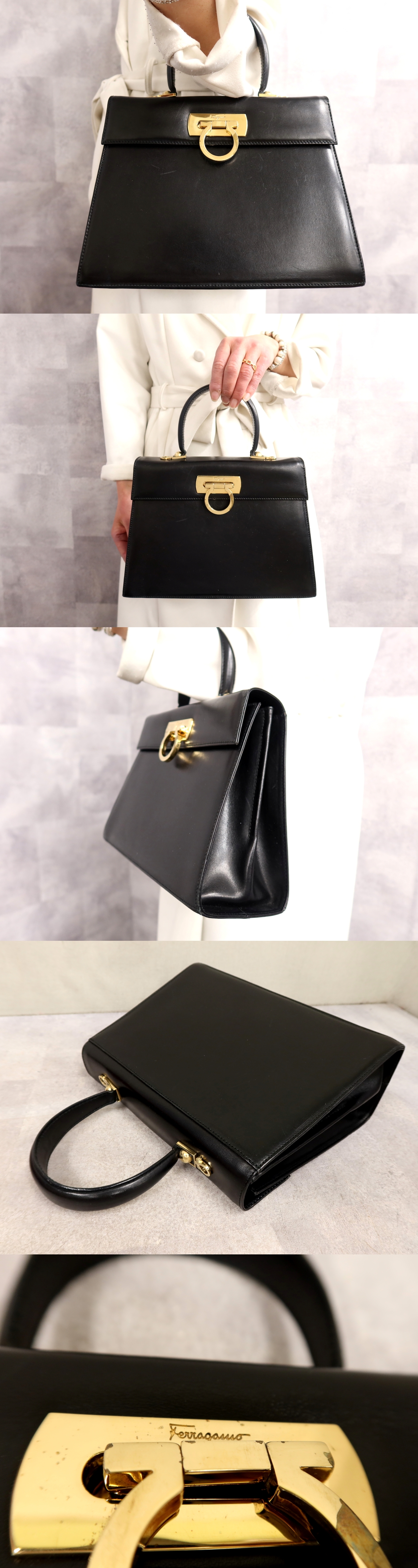 Product name: ●超美品●Salvatore Ferragamo フェラガモ●ガンチーニ●カーフ レザー 本革●ハンド バッグ●黒●ゴールド金具●腕掛け●かばん●Js65547