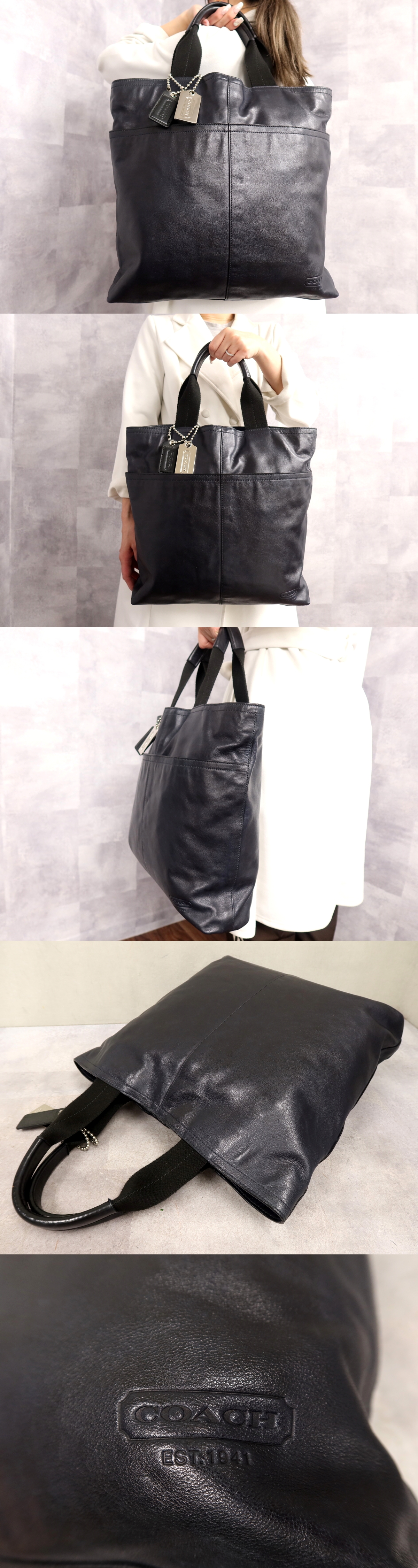 Store ●超美品●COACH コーチ●メンズ●トンプソン●ロゴ型押し●70227●カーフ レザー 本革●トート バッグ●ネイビー●A4 ビジネス●Js66024