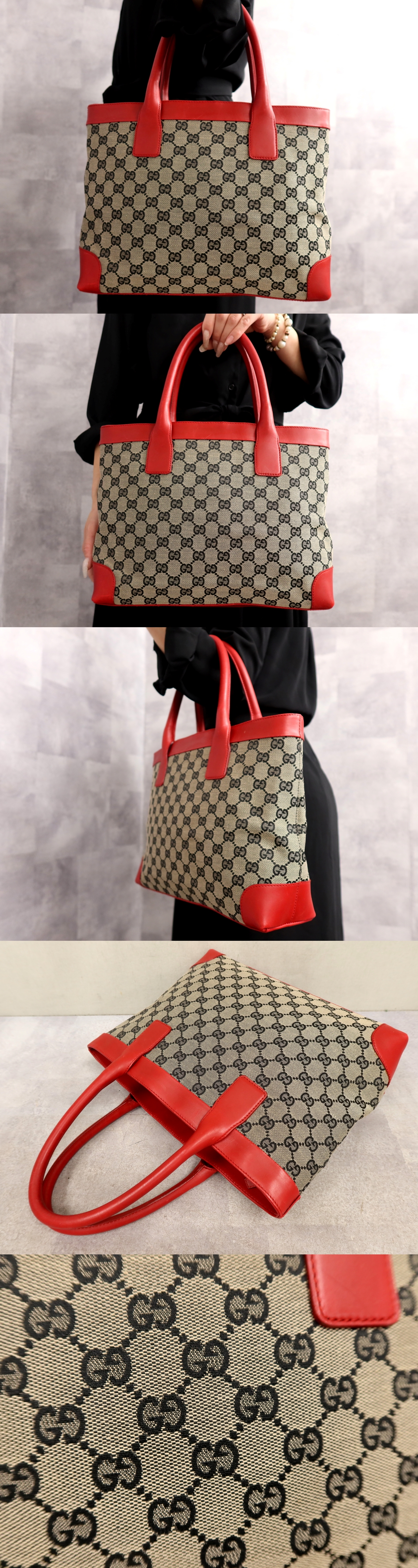 Product name: ●超美品●GUCCI グッチ●GGキャンバス カーフ レザー 本革●ハンド トート バッグ●赤 ベージュ●イタリア製●B5 収納 かばん●Js66768