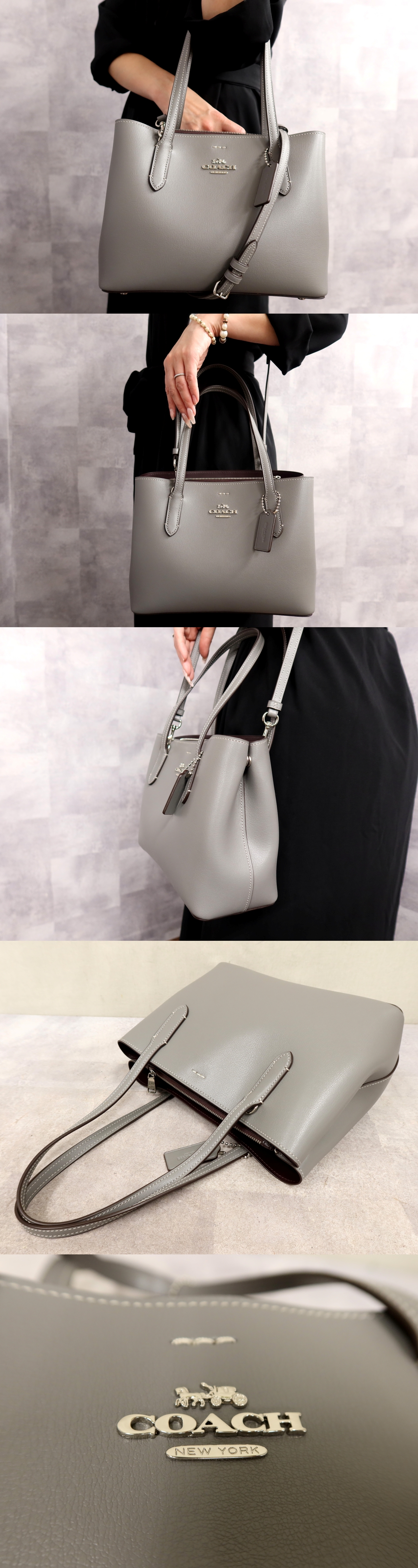 Store ●超美品●新品同様●COACH コーチ●ロゴ金具●F73277●カーフ レザー 本革●2way トート バッグ●グレー●シルバー金具●かばん●Js67204