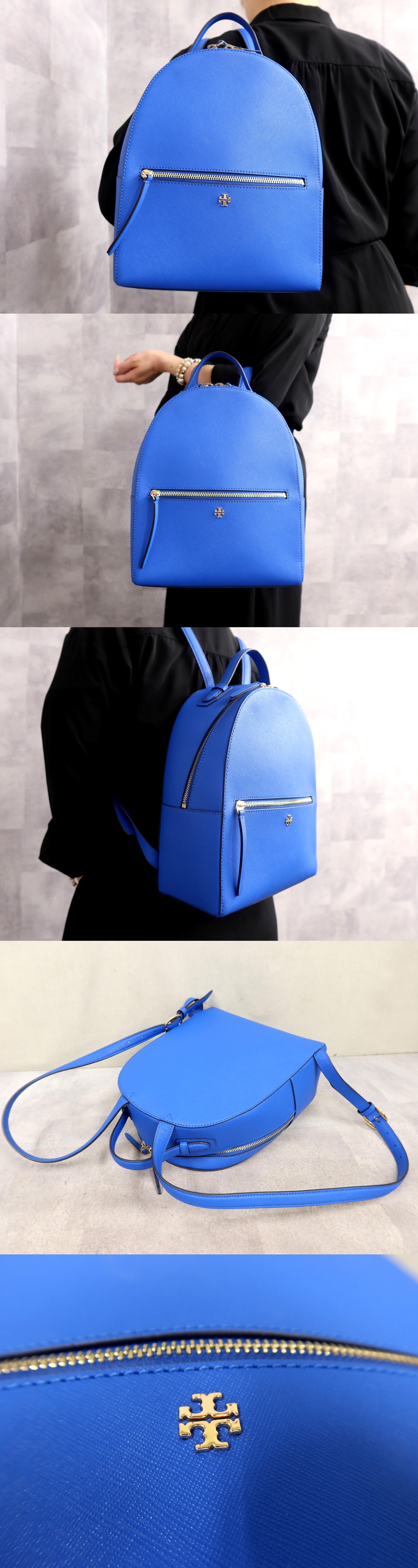Store ●未使用●TORY BURCH トリーバーチ●エマーソン●サフィアーノ レザー 本革●リュックサック●ブルー●ゴールド金具●かばん●Js67290