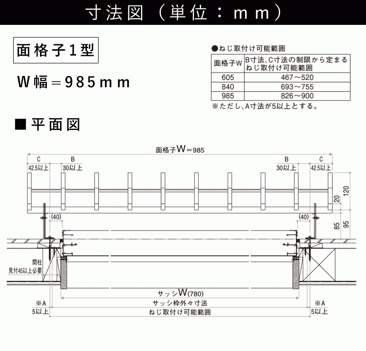 Product name: 面格子 YKK おしゃれ アルミ 防犯対策 シャローネ 1型 985 x 1000