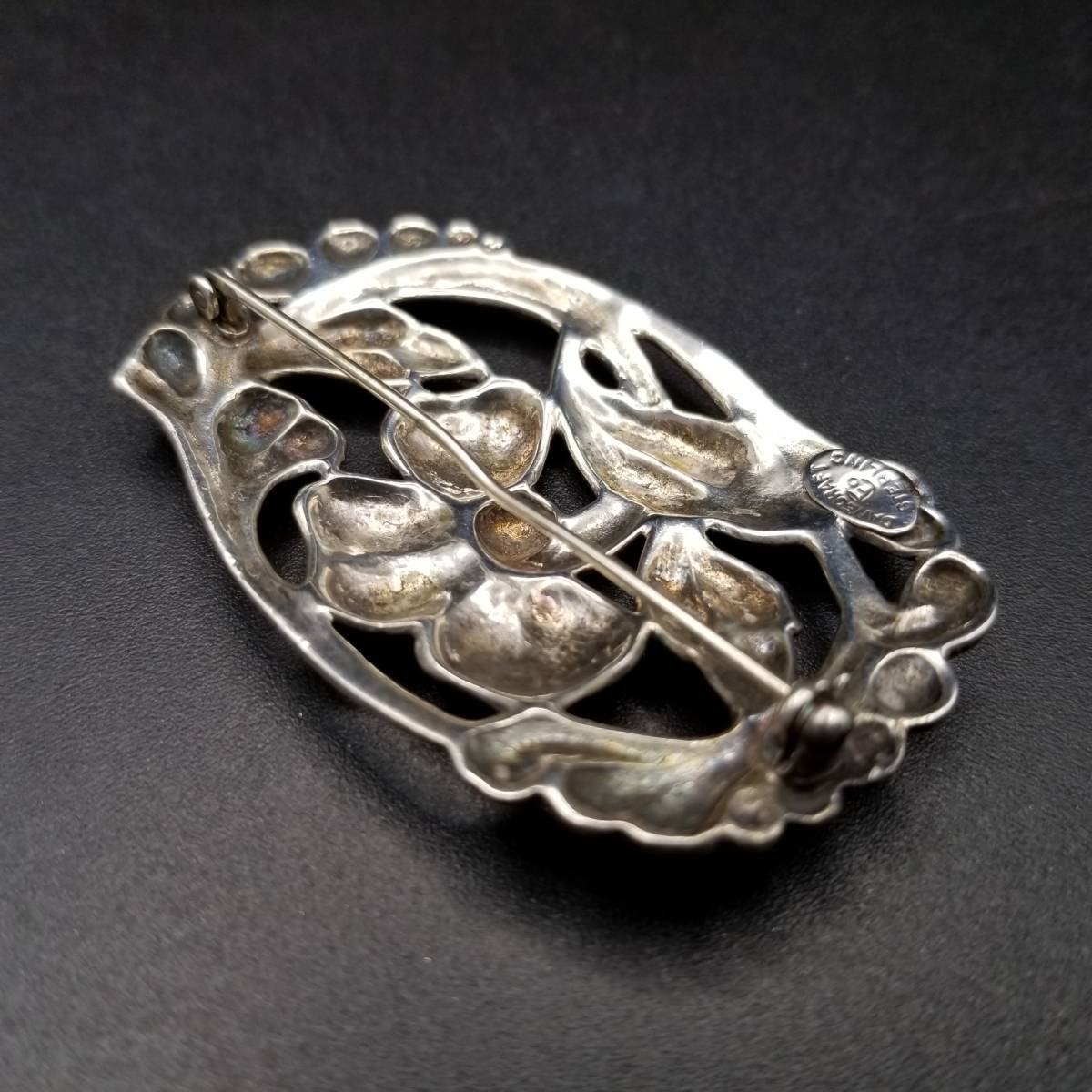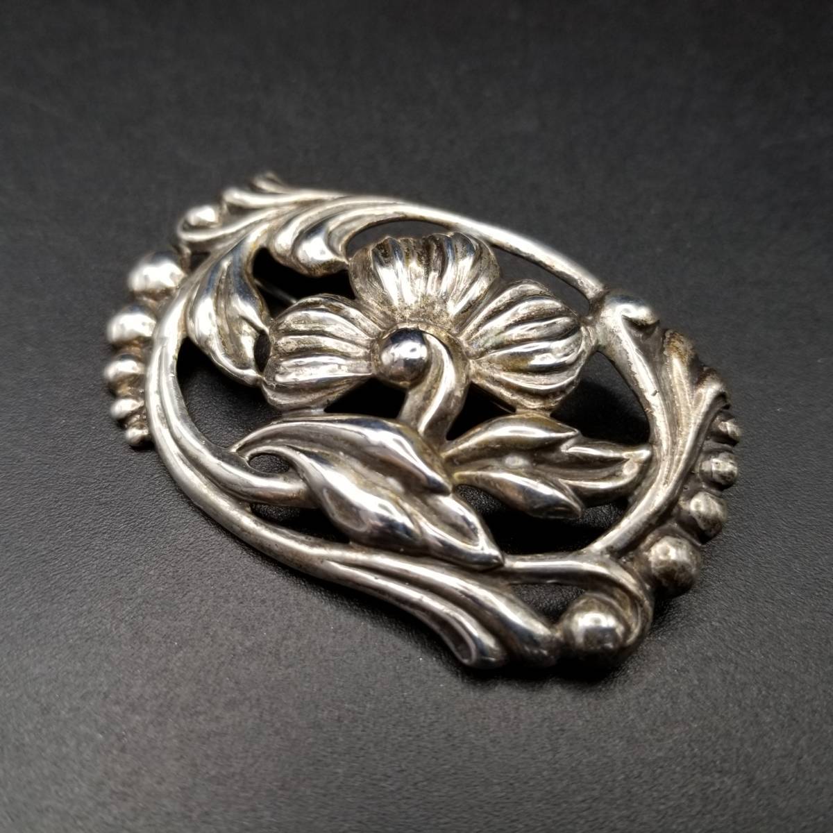 DANECRAFT フラワー モチーフ フレーム 透かし エレガント 上品 スターリング ヴィンテージ シルバー ブローチ ジュエリー 輸入 Y13-S