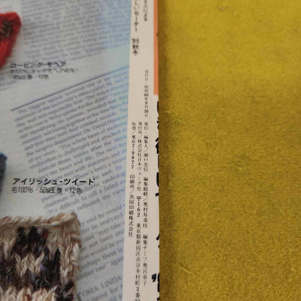 Product name: G10-139 人気作家6人によるいま欲しいセーター'85秋冬 風工房/津川良/栗原美千代/他 日本ヴォーグ社 昭和60年9月発行 傷多数あり。