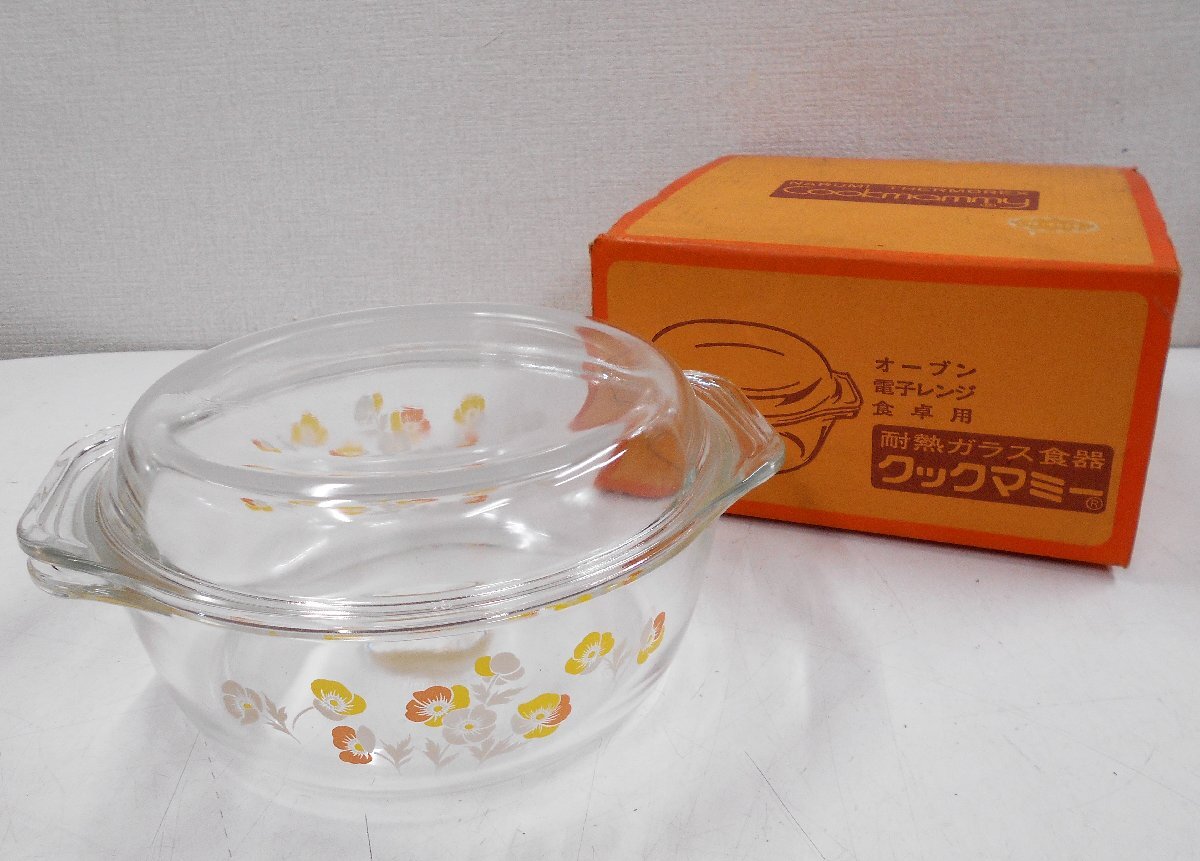 Product name: ナルミ NARUMI COOK MAMMY クックマミー キャセロール R-112 26cm 耐熱ガラス 食器 両手鍋 花柄 昭和レトロ 【タ173】