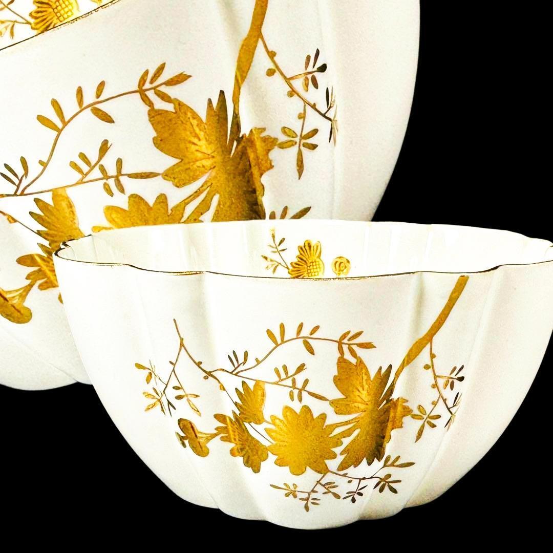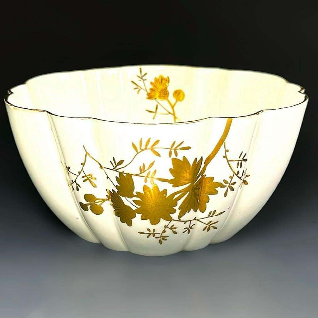 【19世紀】英国 アンティーク フォリー( ワイルマン シェリー)ジャポニズム 金彩 菊花装飾 シュガーボウル 小物入れ イギリス