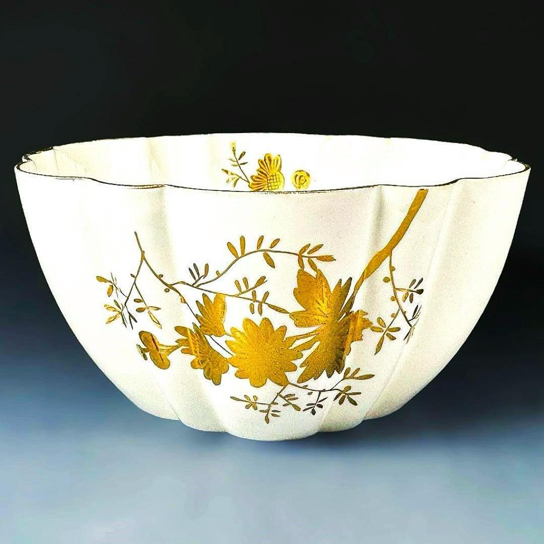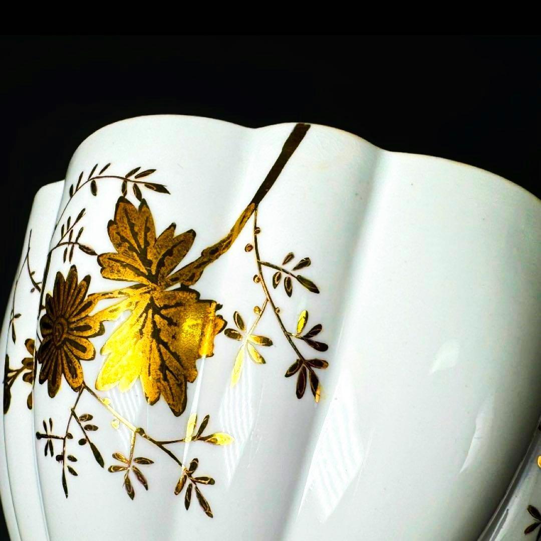 立体的で可愛らしいモールドが入った器体には、ジャポニズムの影響が強く見られる菊花が金彩により装飾されています。