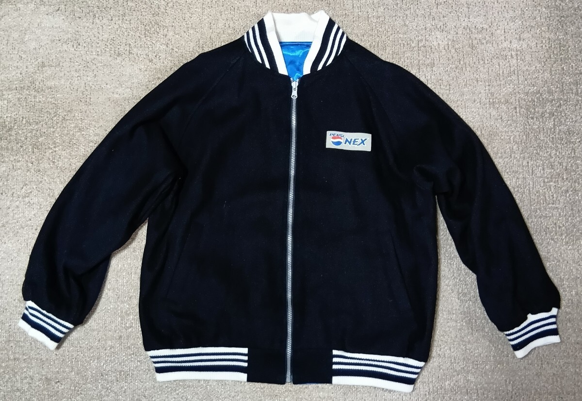 激レアアイテム!PEPSI NEXラグラン切替リバーシブルスカジャンになります!好発色のブルー×シルバーのサテン地とウール素材のリバーシブルですので、実用的な高級感ある一枚です!お探しの方はこの機会に是非いかがですか(^o^)