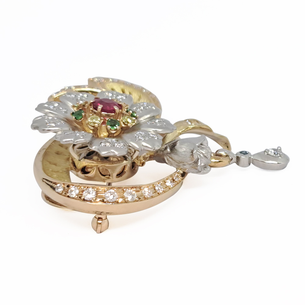 商品名K18/Pt900 揺れる フラワーモチーフ 梶光夫 ルビー 0.55ct ダイヤモンド 1.20ct マルチカラー ブローチ トップ