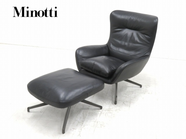 Product name: ★r6se717★展示品★ミノッティ★総本革★レザー★186万★ラウンジチェア★オットマン★セット★回転式検カッシーナアルフレックス