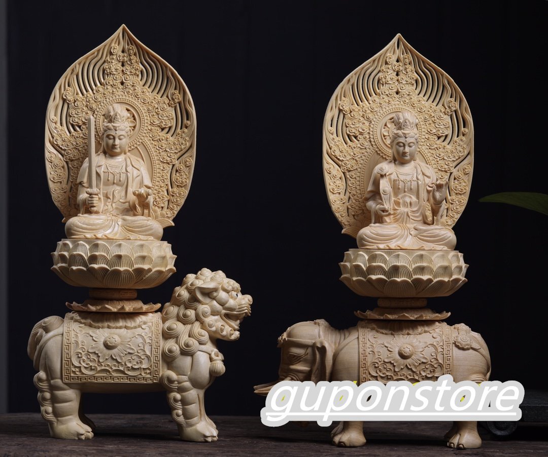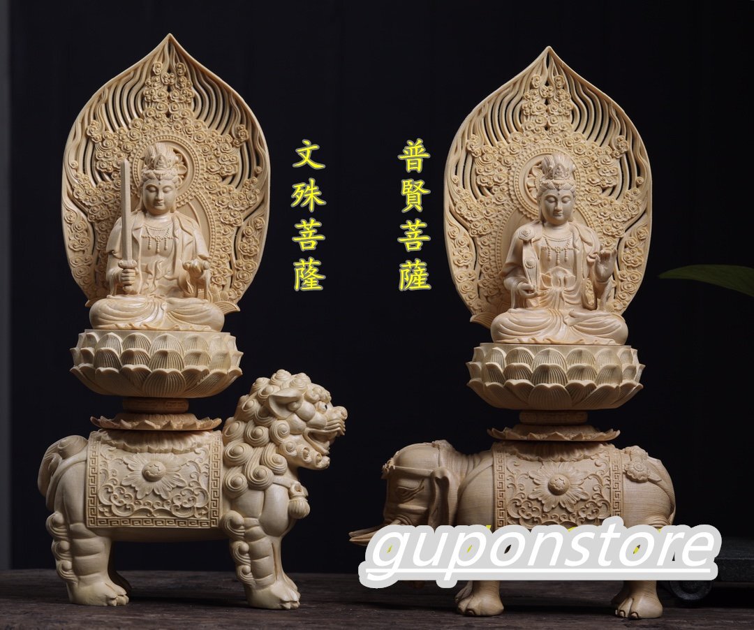 Product name: 最新作 文殊菩薩 普賢菩薩 檜材 仏像 仏教美術 精密細工 仏師で仕上げ品