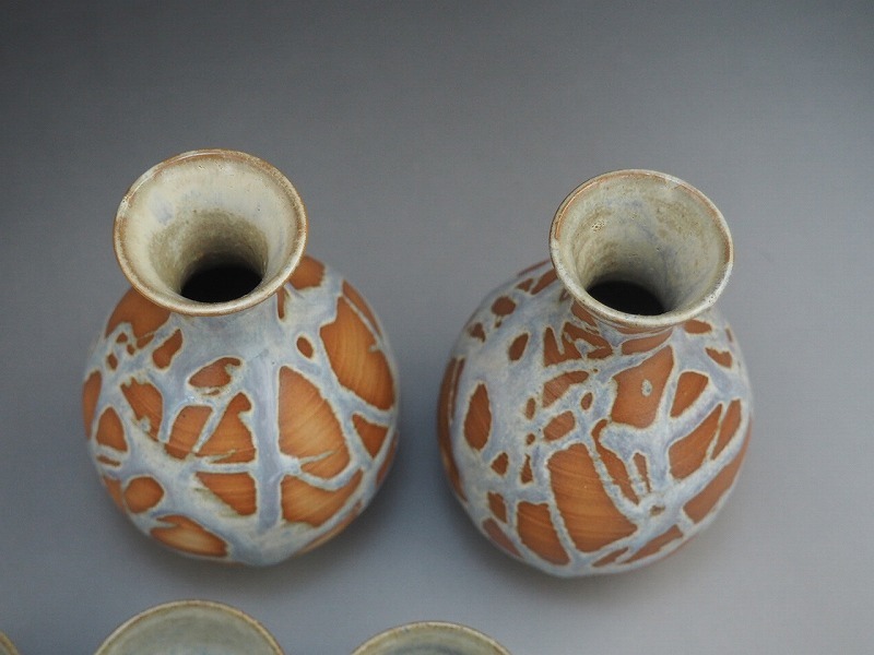 Product name: B1400 京焼 平安順 造 斑流 酒器揃 共箱付 ☆ 酒器 徳利 猪口 酒盃 酒杯 懐石道具 会席道具 茶懐石 陶器 作家物 在銘 陶印 美品 良品 無傷
