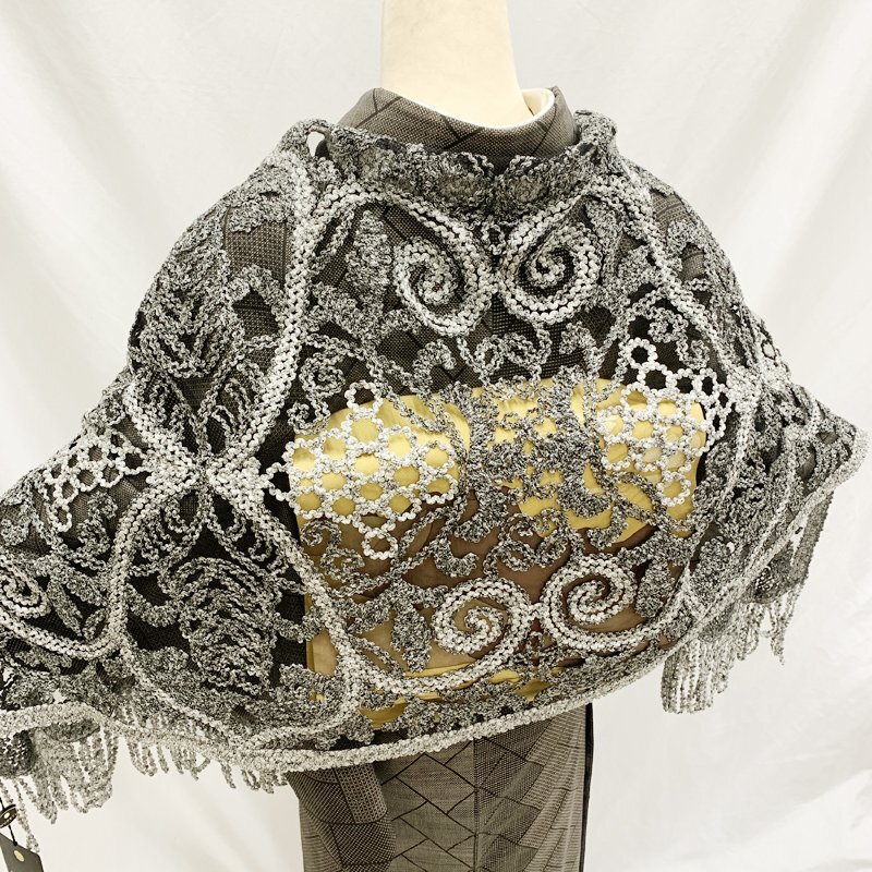 ●無月 レースショール 10 モノトーンカラー 向かい葡萄唐草文様 刺繍 泥染絣 白黒灰● (No.n)