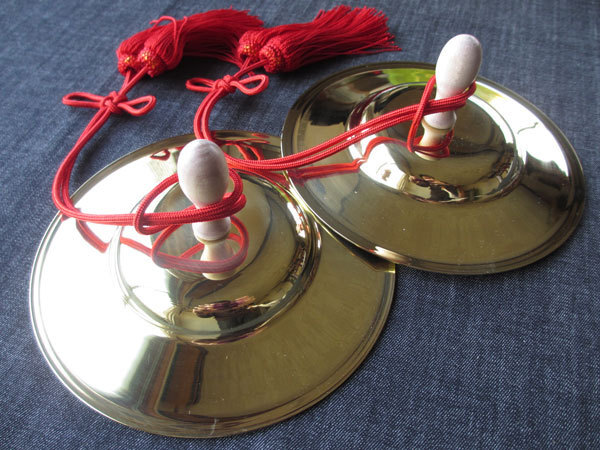 小さなシンバルに似た楽器で、打ち合わせて音を出す鳴り物です。