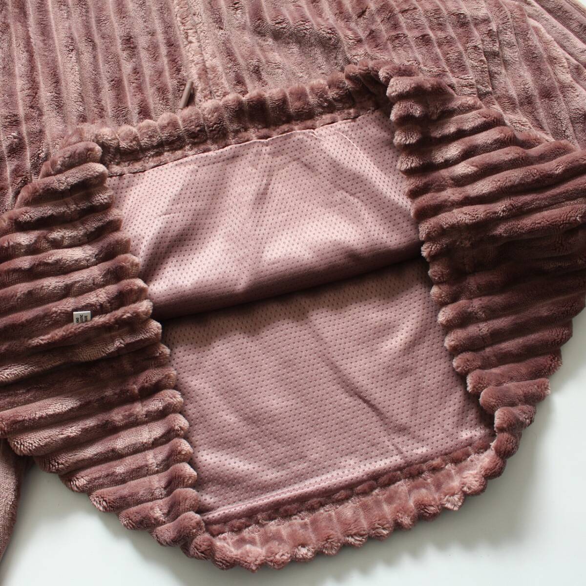 凸凹とした立体的なストライプパターンのベルベット素材で、ハーフジップ、ハンドポケット、