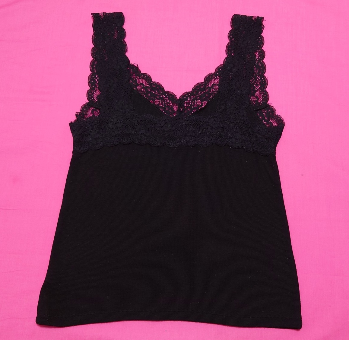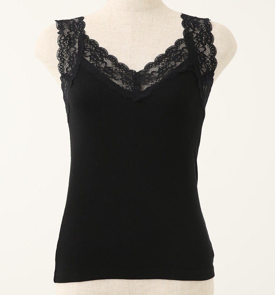 Product name: rienda黒総レースキャミTOPリブキャミソールトップスリエンダブラック