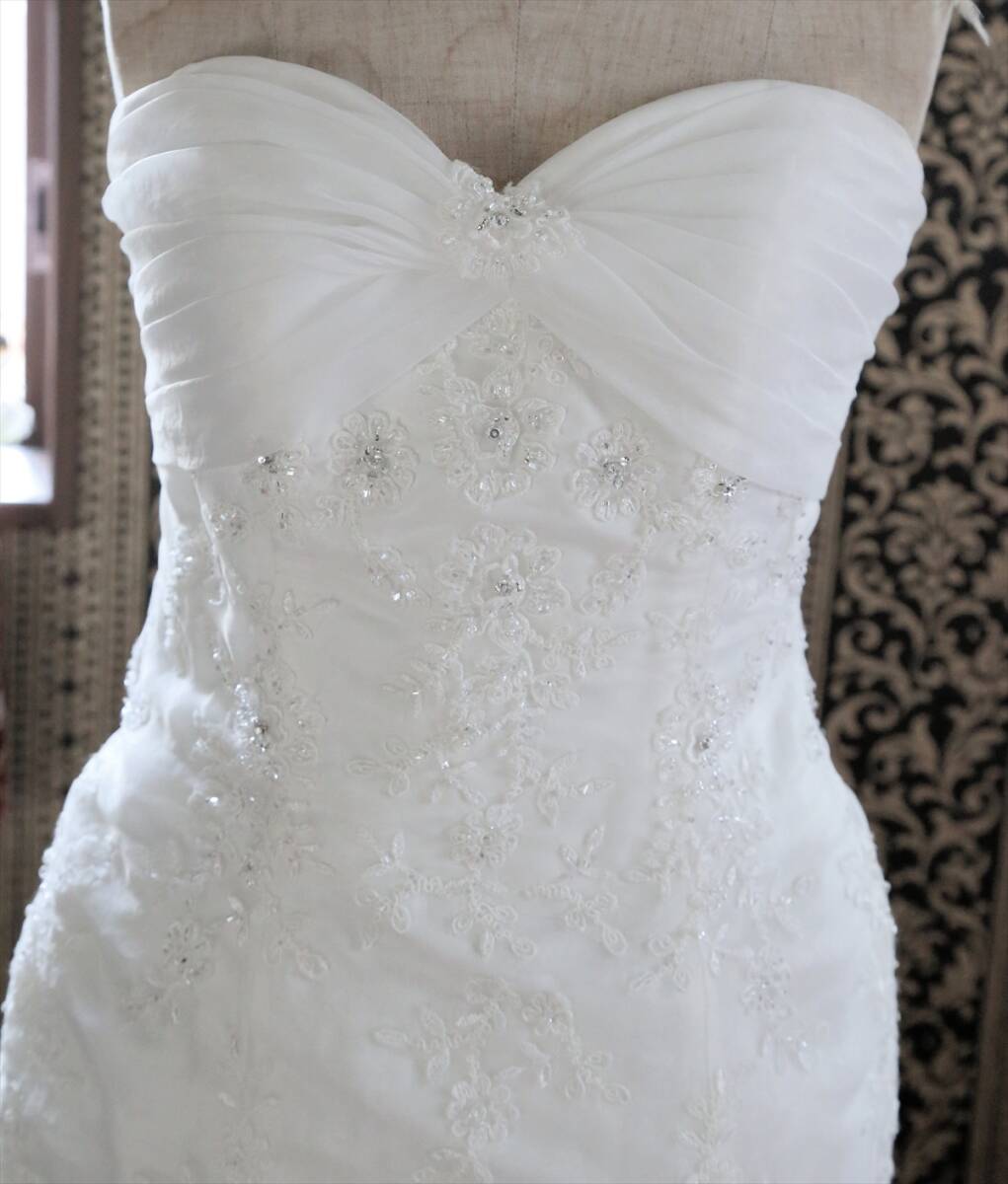 ドレスはバストとウエストのサイズで着用しますので、「○サイズの服が着れるから』『身長が低いから』等で判断せず、必ずご自身のサイズを計って入札をお願いいたします。