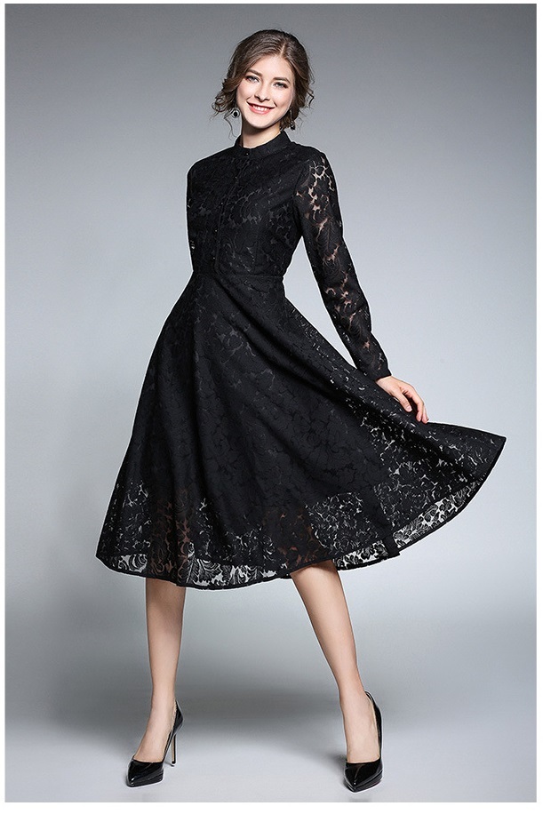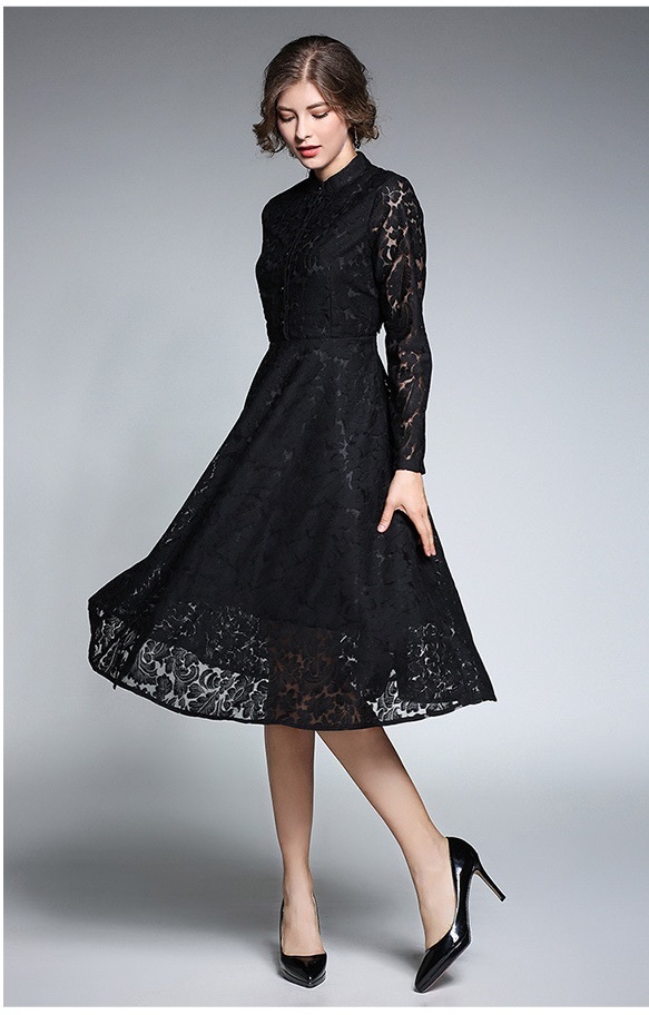 Product name: 在庫一掃セール!激安!ブラック 6L OL通勤 通学パーティー 二次会 結婚式 披露宴 大人上品 長袖 花柄総レースドレス