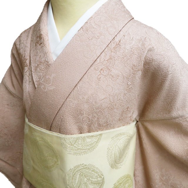 Product name: 色無地 着物 中古 正絹 袷 フォーマル 紋付き 地模様 花唐草模様 洗柿色 身丈166.5cm 裄67cm L トール きもの北條 A1145-4