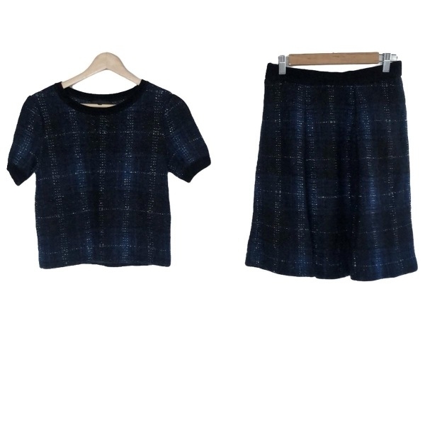 Product name: アナイ ANAYI スカートセットアップ - ネイビー×黒×シルバー レディース ニット/チェック柄/ラメ/ウエストゴム レディーススーツ