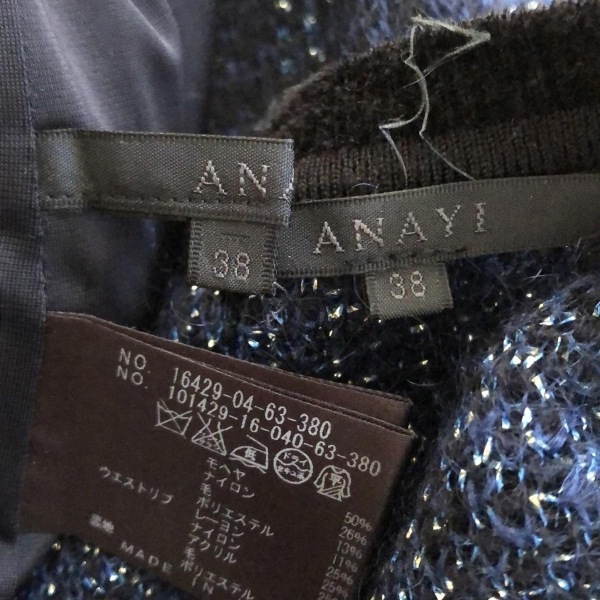 アナイ ANAYI スカートセットアップ - ネイビー×黒×シルバー レディース ニット/チェック柄/ラメ/ウエストゴム レディーススーツ